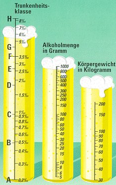 Mäßiger Bierkonsum senkt das Herzinfarkt-Risiko ! 0.5 l Pils mit 4.8 Vol% Alkohol enthalten etwa 18 g Alkohol ! Das Nomogramm zeigt die Abhängigkeit des Promillewerts von Ihrem Körpergewicht...